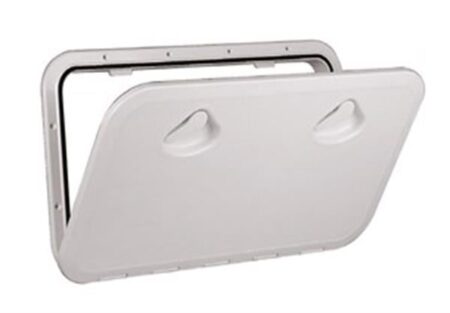 Beyaz. 180° açılabilir. Vida delikleri kapak altındadır, kapalı iken görülmez. 270 X 375mm.