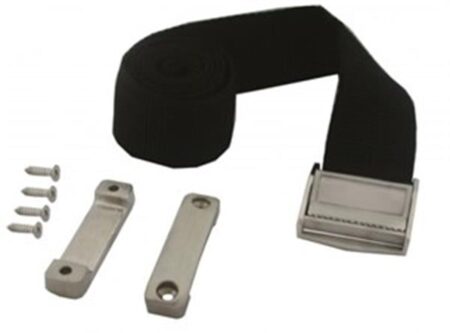 Yakıt tankı sabitleme kemeri. 316 paslanmaz çelik bağlantı elemanları ve tokası. 38 mm genişlik, 96 cm uzunluk.